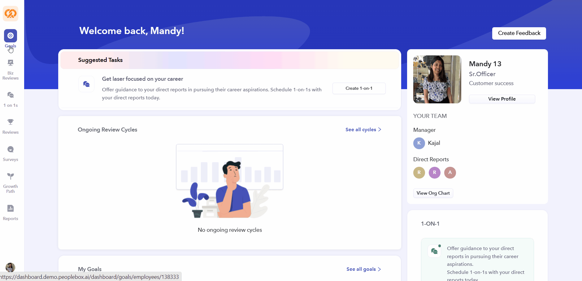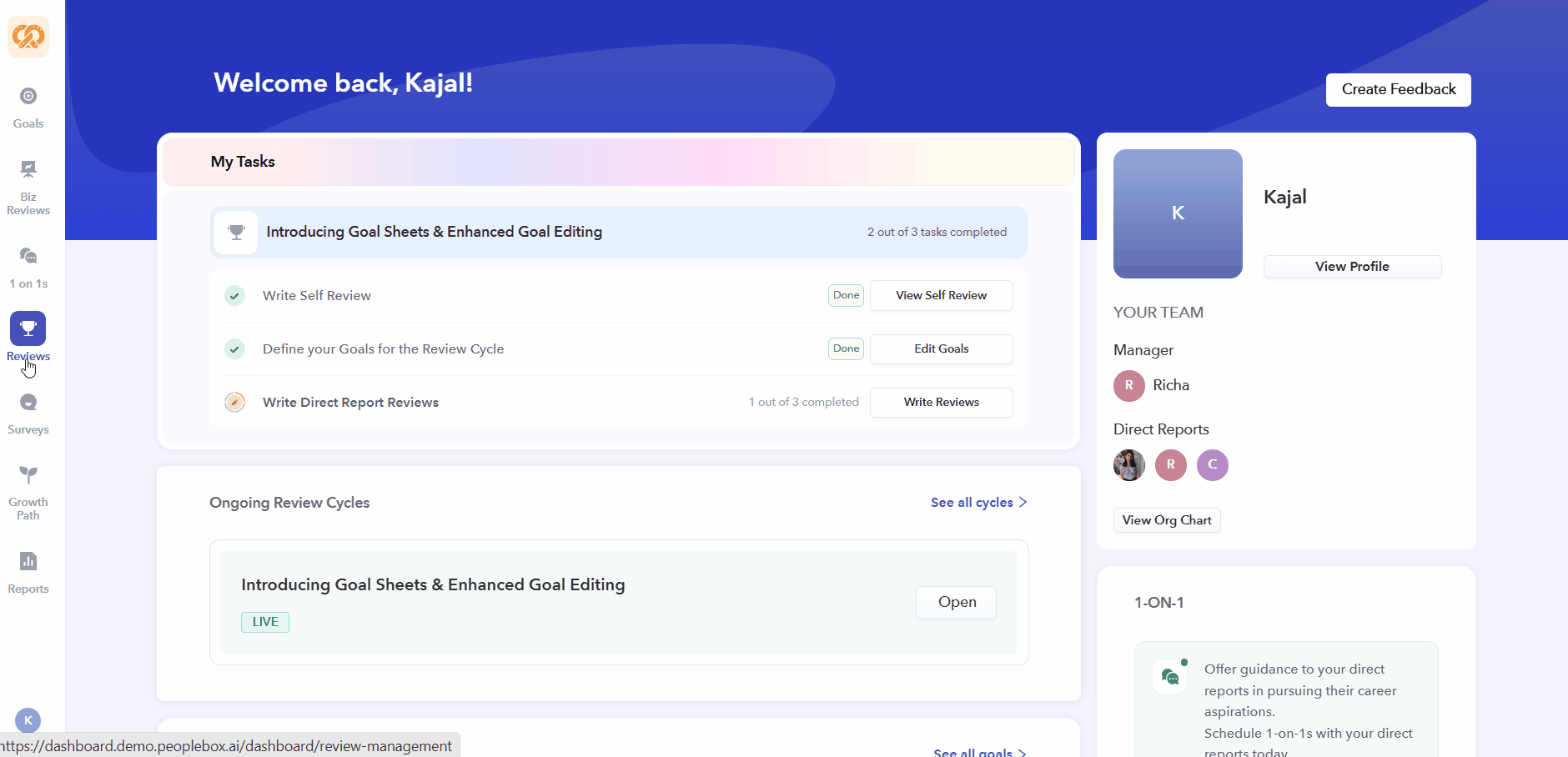 - A new Overview page centralizes all actions and required tasks for each review cycle, including direct access to Goal Sheets.